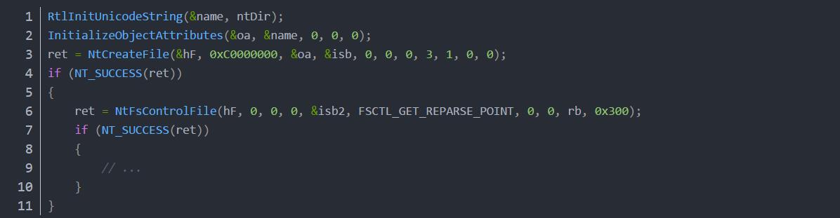 2:获取目标目录的句柄并通过FSCTL_GET_REPARSE_POINT控制代码检索重解析数据: