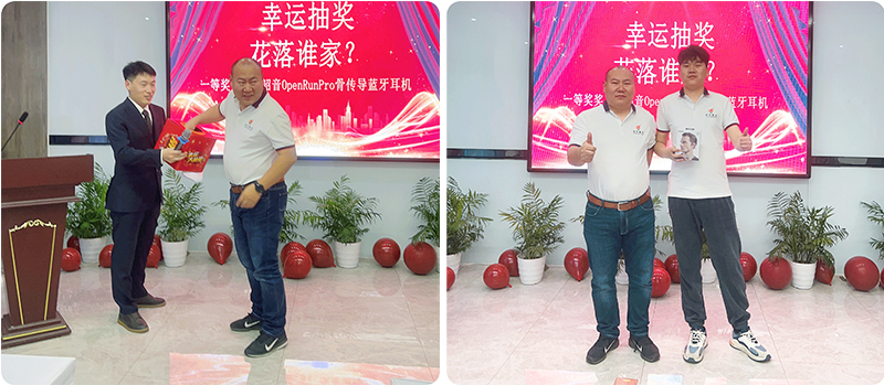 本次年会的重头戏--幸运抽奖活动,现场气氛热烈无比。一等奖:韶音OpenRunPro骨传导蓝牙耳机 ;二等奖:天猫精灵V10SE、华FreeBuds4E耳机; 三等奖:小米手环7、小米体脂秤。幸运抽奖最后花落谁家?