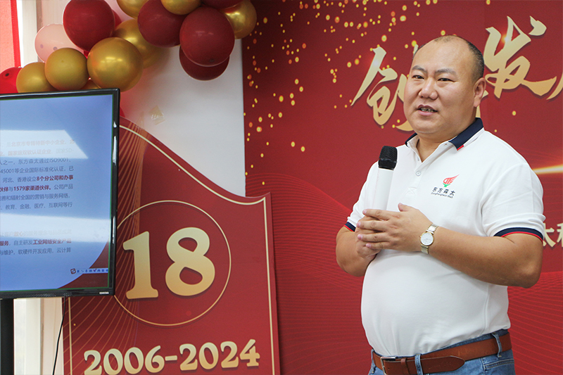 春华秋实又一载,砥砺奋进启新篇。2024年4月13日,东方森太科技集团在银科大厦隆重举办以“创新发展 共赢未来”为主题的18周年年会盛典和表彰大会。这一天,公司上下欢聚一堂,共同回顾过去18年的辉煌历程,总结2023年的工作成果,并对新一年的发展蓝图和奋斗目标进行了展望。