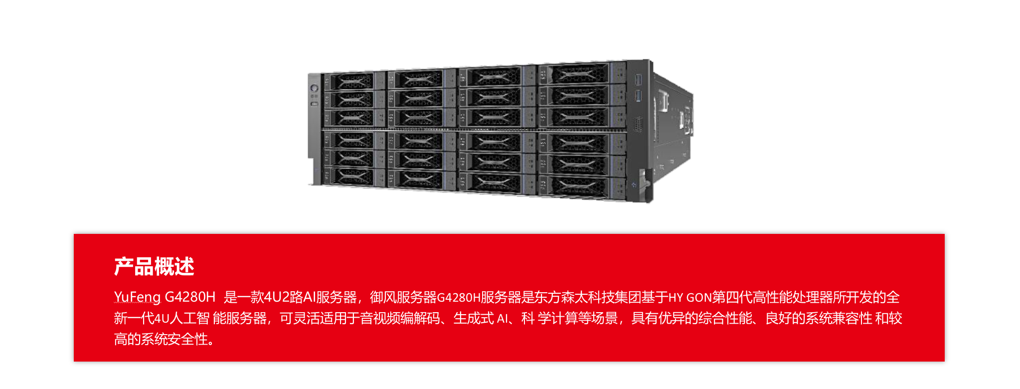 - ���强劲算力:支持2颗C86-4G处理器(单颗64物理核心),I/O带宽达PCIe5.0,同比上代提升100%;最高配置8张双宽AI加速卡,满足高密度AI算力需求。