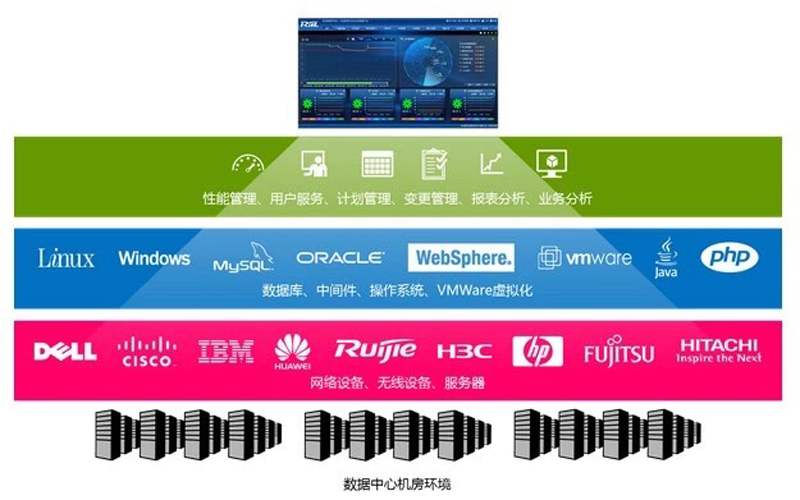 RIIL就是统一管理信息化的人、财、物,把这些人、财、物信息收集以后,整合为基于业务、面向管理者、高度可视化的运营管理平台。该运维管理平台将IT基础架构及相关应用有效量化,并映射到它们支持的业务上,直观反映IT基础设施的动态变化对业务造成的影响和威胁,帮助管理者实现IT的精细化管理,掌控全局,准确衡量IT对业务的价值贡献,有力保障业务的健康、稳定运行